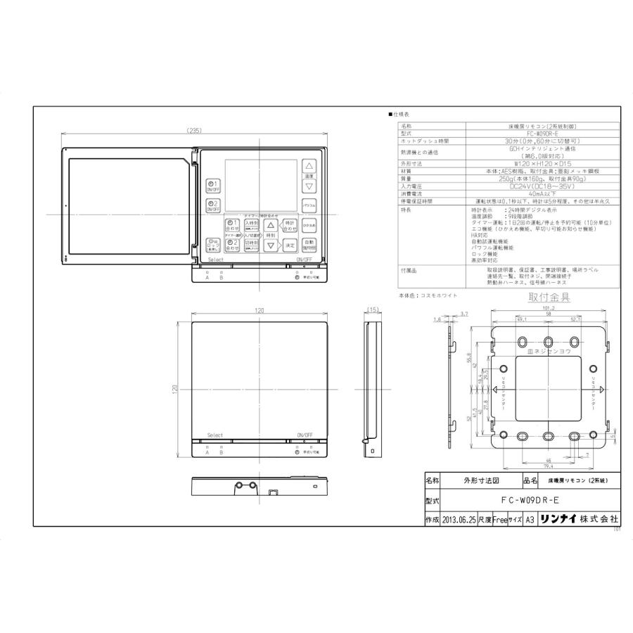 | メーカー | FC-W09DR 床暖房用リモコン |